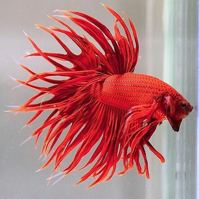 Cupang Crowntail, dikenal juga sebagai cupang serit, berasal dari Indonesia dan menjadi salah satu ikon ekspor yang terkenal. Ciri khasnya adalah bentuk sirip yang berjumbai seperti mahkota, memberikan kesan tegas dan berwibawa. Warna-warnanya bervariasi, mulai dari merah menyala, biru tua, hingga hitam legam. Jenis ini memiliki karakter yang kuat dan agresif, sehingga sering dijadikan pilihan untuk aduan ringan maupun pajangan hias yang mencuri perhatian.